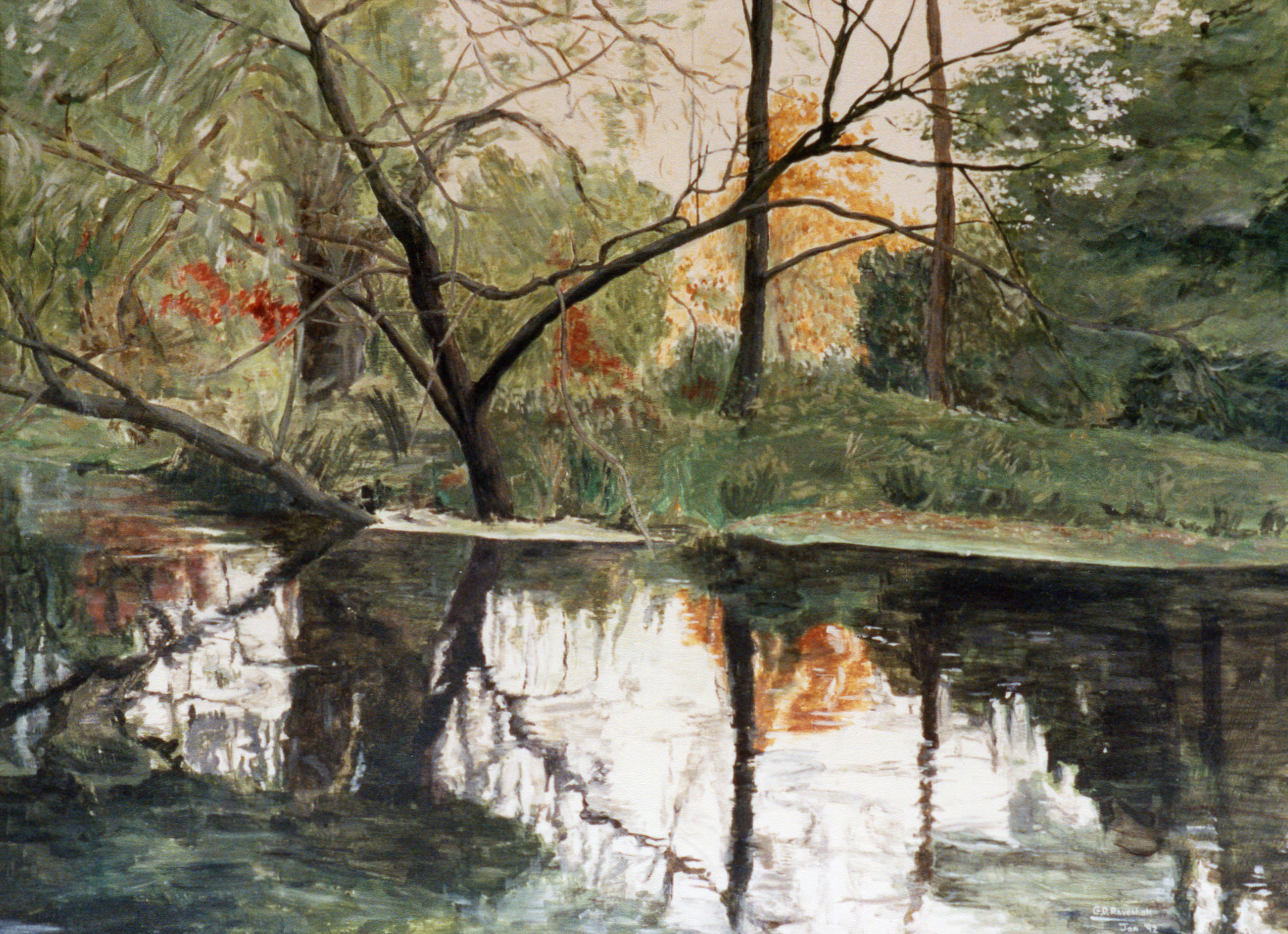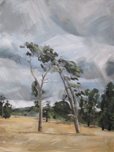 An 'en plein air' study in acrylics near Holbrook creek on canvas board. March 2007. 67cm x 58cm in solid wood frame.