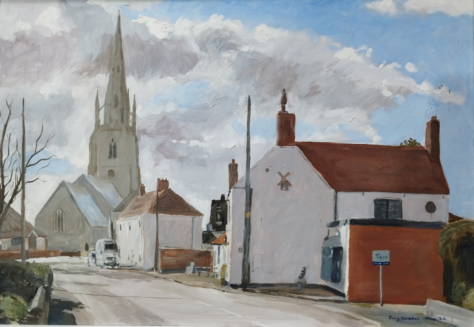 Helpringham Village showing the Brass Windmill and the Church - May 2024