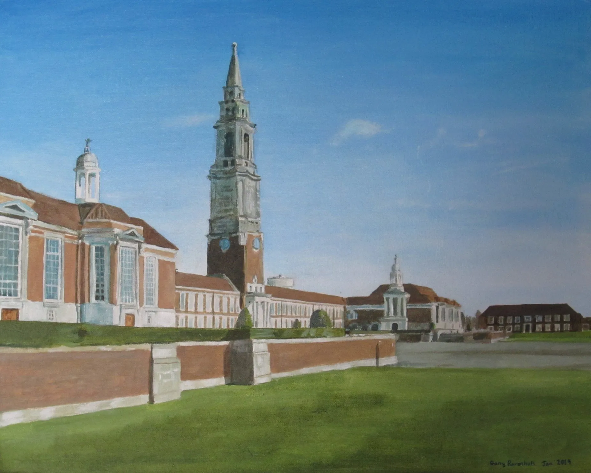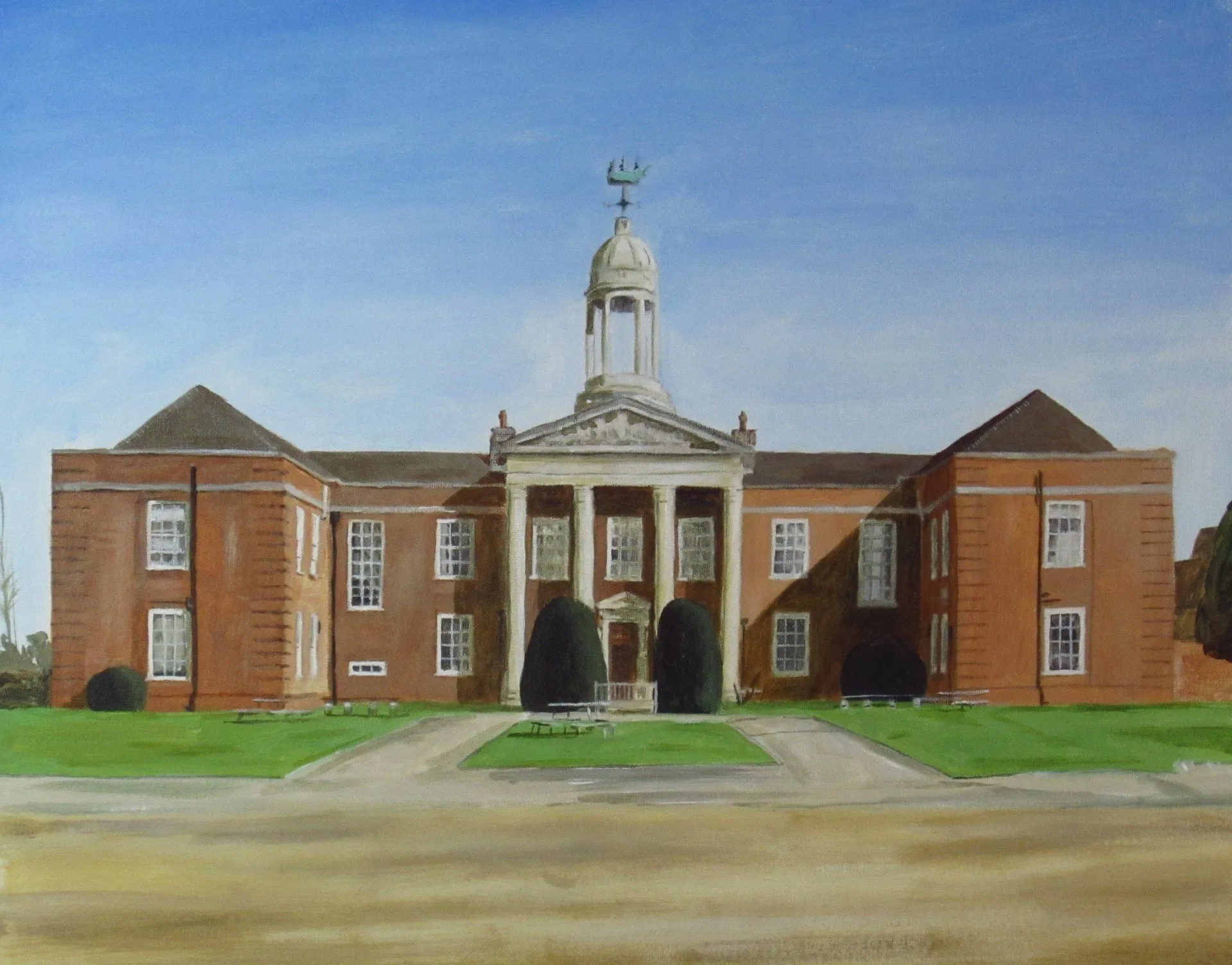 A painting of Nelson house at the Royal Hospital School, Holbrook. Painted in acrylics for Steph, as a present for her Dad.