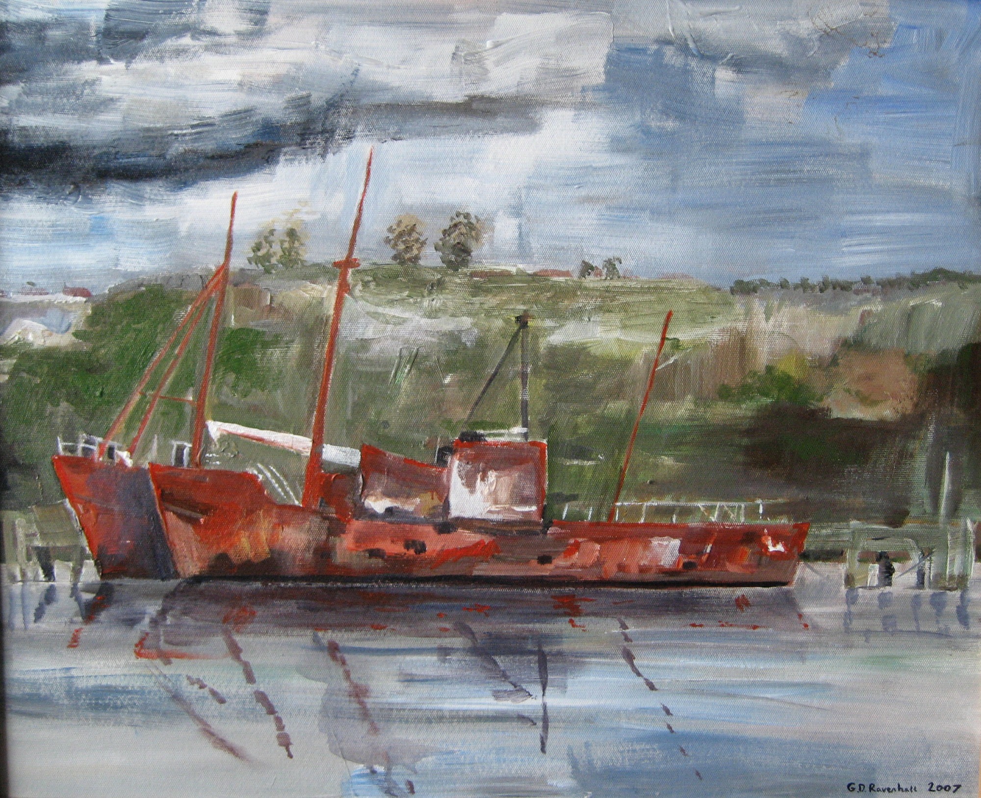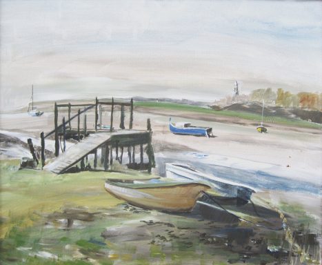 These two boats had been moored near Ipswich for years. Acrylic study from direct observation on canvas board.