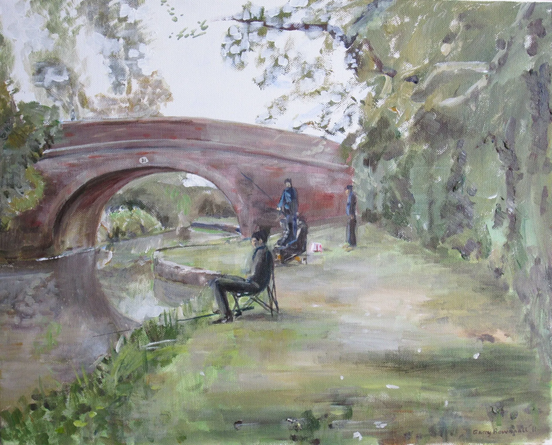 The Fishing Contest 2010 An acrylic study created en plein air, showing a scene by the canal near Swinford in Leicestershire.